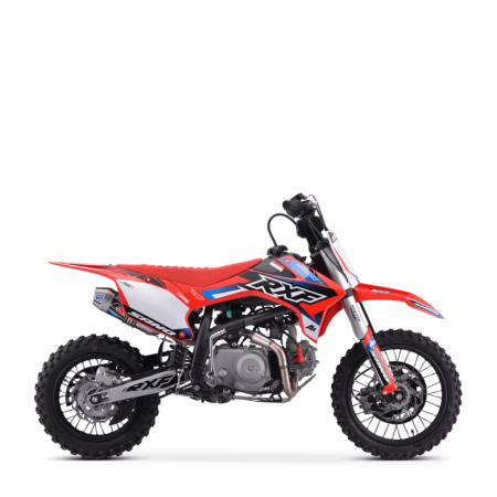 La nouvelle gamme RXF fait rentrer la marque Apollo Motors dans une nouvelle ère! Nouveau look, nouveau tés de fourche, nouvel échappement,nouveau moteur! Accrochez-vous à votre guidon ces motos sont incomparable les autres marques du marché du Dirt Bike. 5 ans de développemen au sein du siège Apollo Motors ont été nécessaires pour faire naître et développer le nouveau concept RXF. Un châssis unique testé en compétition accueillant un pied de cadre moulé, des Suspensions dignes d'une MX Japonaise, des plastiques au look agressif indépendants de la selle : vous n'avez plus besoin d'enlever la selle pour enlever vos plastiques, la selle est démontable par le dessous. Cette RXF junior est la toute dernière née de la gamme de la marque Apollo, ce modèle se positionne entre la Rxf mini et la Rxf open avec hauteur de selle entre les deux. Super pratique cette moto arrive avec un moteur semi-automatique, il n'y a donc pas besoin d'embrayer pour passer l'un des 4 rapports de la boite de vitesse. La junior est équipé d'un démarreur électrique, votre enfant pourra donc la démarrer très facilement. Le kit plastique des modèles RXF a été développé en France dans les bureaux d'Apollo Motors en étroite collaboration avec leurs pilotes usines: ligne de poutre ultra fine, liberté de mouvement maximale, sans aucun compromis pour le placement des composants tout lui va comme un gant. L'intelligence de conception du nouveau kit plastique se ressent dès que l'on s'assoit sur la moto. Après les premiers tours, on réalise la réelle ampleur que génèrent toutes ces différences. Cette RXF change de dimension et d'esthétique afin de proposer des motos proches de celles des championnats de moto cross. Vous en avez marre des motos jetables et peu fiables ? Vous voulez acheter une moto conçue en France? Cette nouvelle RXF répondra à vos exigences. "Fini les Pit Bikes et autres Dirt Bikes chinoises : vive la Minicross !" Toute la gamme RXF est vendue avec un manuel d'entretien pour que tu puisses profiter le plus longtemps de ta moto. La Apollo RXF 110-E Semi-Auto est une minicross idéale pour l'initiation à la moto tout-terrain. Lors de l'utilisation du démarreur électrique, nous vous préconisons de ne pas accélérer en même temps au risque de créer un retour de kick qui se répercutera sur la chaine du démarreur qui finira par casser. Si le moteur est froid ou peine à démarrer, nous vous invitons à actionner le starter sur votre carburateur et si ce n'est pas suffisant, nous vous invitions à serrer d'un quart de tour la vis de ralentie. Lorsque vous êtes prêt à rouler nous vous invitons à enlever et le starter et à dévisser la vis du ralentie d'un quart de tour.